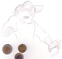 that I might have ruined such a magnificent costume, so I pulled out a fifty-Euro note and told him I